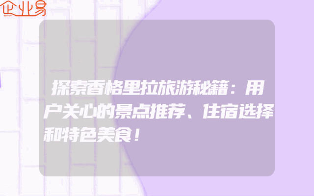 - 探索香格里拉旅游秘籍:用户关心的景点推荐、住宿选择和特色美食!