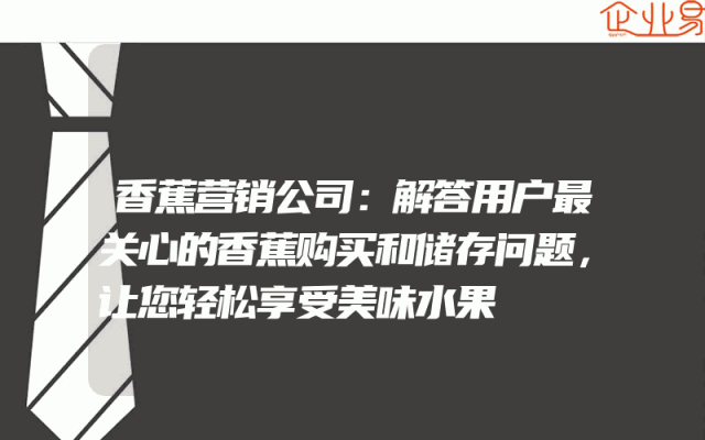 - 香蕉营销公司:解答用户最关心的香蕉购买和储存问题,让您轻松享受美味水果
