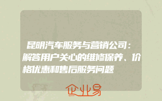 - 昆明汽车服务与营销公司:解答用户关心的维修保养、价格优惠和售后服务问题