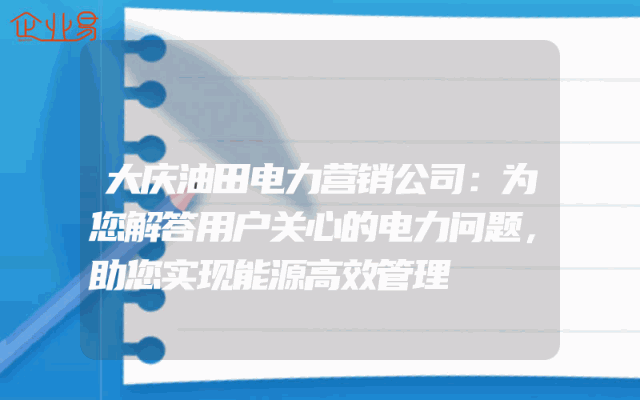 - 大庆油田电力营销公司:为您解答用户关心的电力问题,助您实现能源高效管理