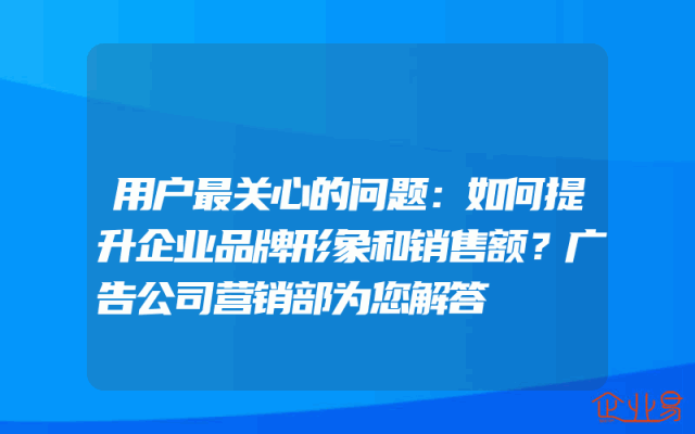 - 用户最关心的问题:如何提升企业品牌形象和销售额?广告公司营销部为您解答