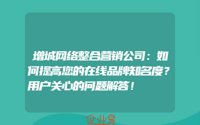- 增城网络整合营销公司:如何提高您的在线品牌知名度?用户关心的问题解答!