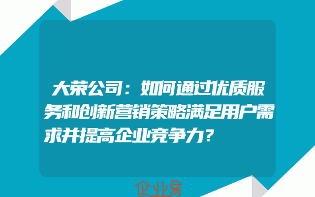 - 大荣公司:如何通过优质服务和创新营销策略满足用户需求并提高企业竞争力?