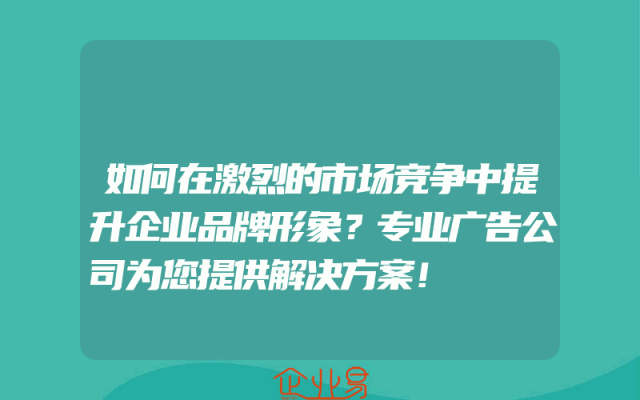 - 如何在激烈的市场竞争中提升企业品牌形象?专业广告公司为您提供解决方案!
