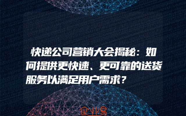 - 快递公司营销大会揭秘:如何提供更快速、更可靠的送货服务以满足用户需求?
