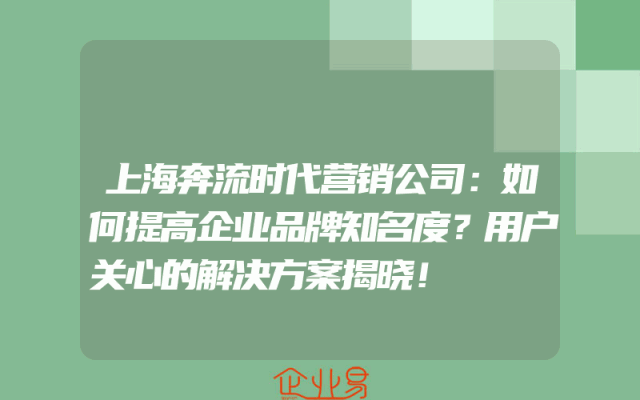 - 上海奔流时代营销公司:如何提高企业品牌知名度?用户关心的解决方案揭晓!