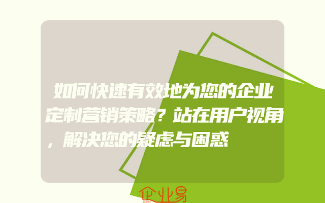 - 如何快速有效地为您的企业定制营销策略?站在用户视角,解决您的疑虑与困惑