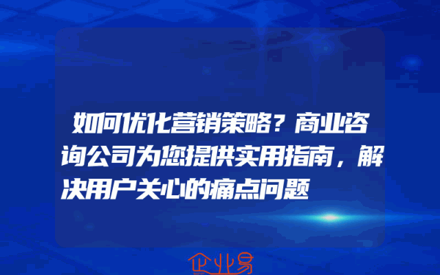 - 如何优化营销策略?商业咨询公司为您提供实用指南,解决用户关心的痛点问题