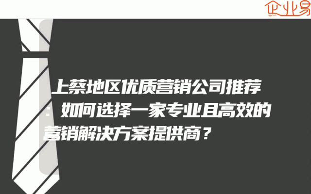 - 上蔡地区优质营销公司推荐:如何选择一家专业且高效的营销解决方案提供商?在当今竞争激烈的市场环境中,企业需要通过有效的营销策略来提升品牌知名度、吸引潜在客户并实现销售增长。然而,营销活动的成功并非一蹴而就,它需要与专业的营销解决方案提供商合作