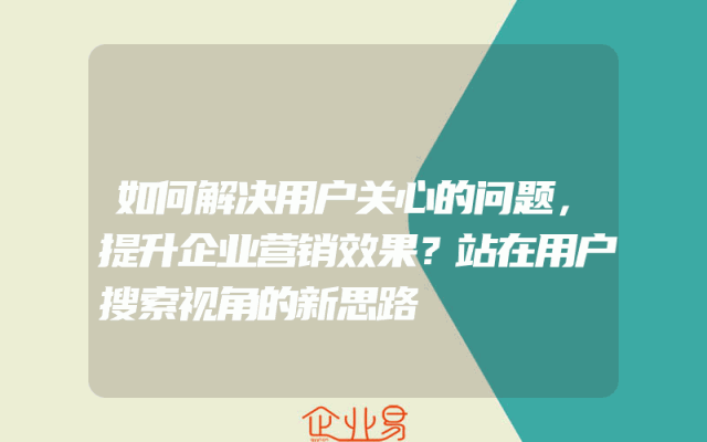 - 如何解决用户关心的问题,提升企业营销效果?站在用户搜索视角的新思路