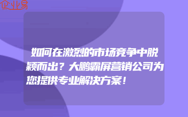 - 如何在激烈的市场竞争中脱颖而出?大鹏霸屏营销公司为您提供专业解决方案!