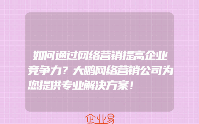 - 如何通过网络营销提高企业竞争力?大鹏网络营销公司为您提供专业解决方案!