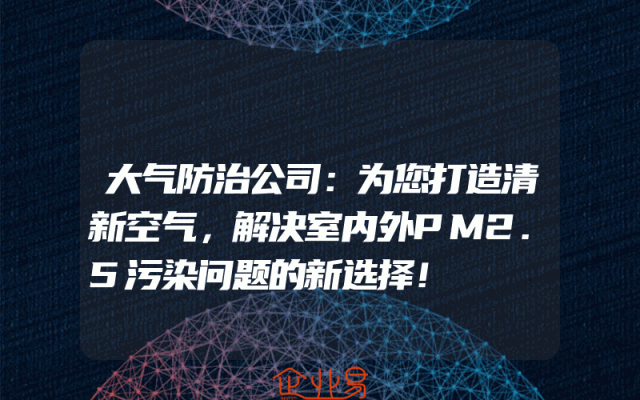 - 大气防治公司:为您打造清新空气,解决室内外PM2.5污染问题的新选择!