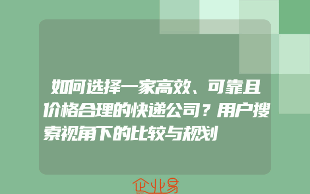 - 如何选择一家高效、可靠且价格合理的快递公司?用户搜索视角下的比较与规划