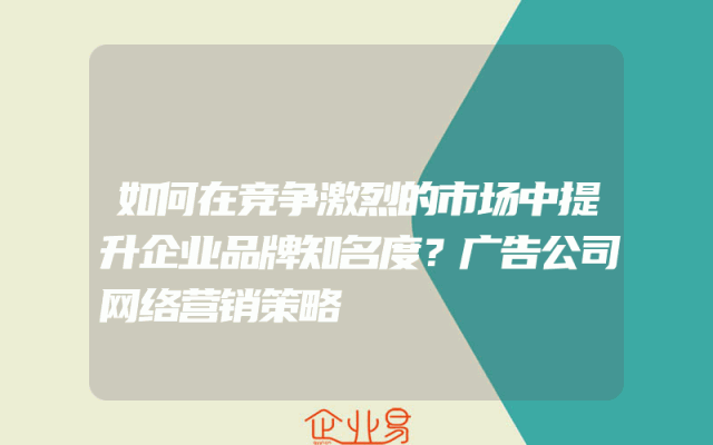 - 如何在竞争激烈的市场中提升企业品牌知名度?广告公司网络营销策略
