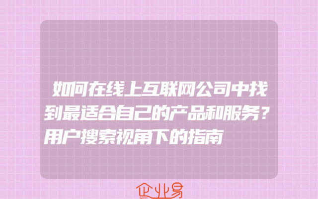 - 如何在线上互联网公司中找到最适合自己的产品和服务?用户搜索视角下的指南