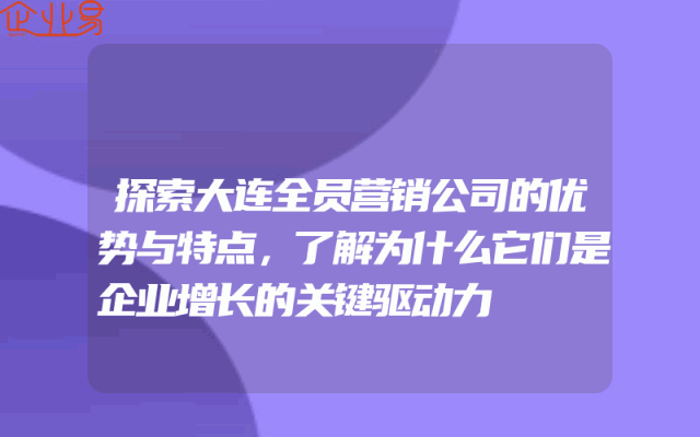 - 探索大连全员营销公司的优势与特点,了解为什么它们是企业增长的关键驱动力
