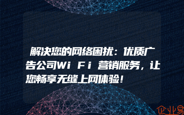 - 解决您的网络困扰:优质广告公司WiFi营销服务,让您畅享无缝上网体验!