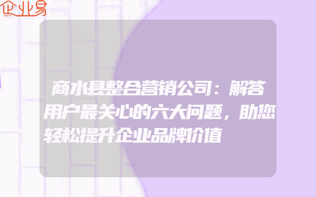 - 商水县整合营销公司:解答用户最关心的六大问题,助您轻松提升企业品牌价值