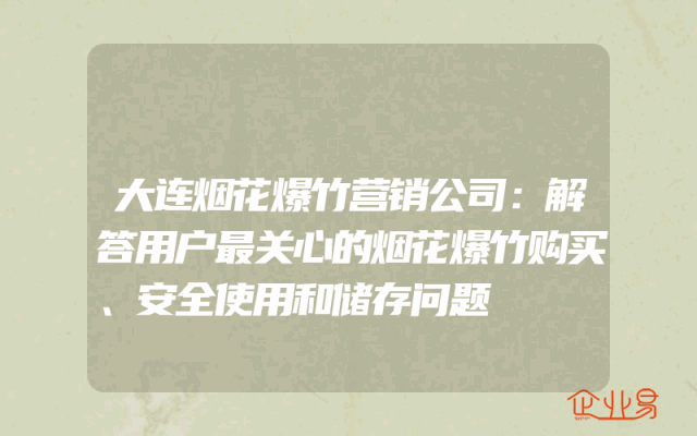- 大连烟花爆竹营销公司:解答用户最关心的烟花爆竹购买、安全使用和储存问题