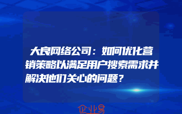 - 大良网络公司:如何优化营销策略以满足用户搜索需求并解决他们关心的问题?