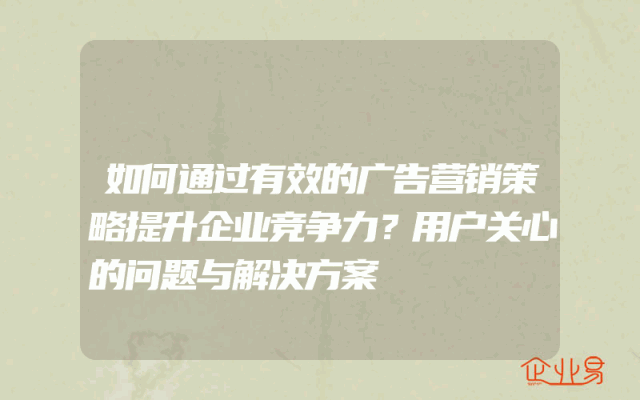 - 如何通过有效的广告营销策略提升企业竞争力?用户关心的问题与解决方案