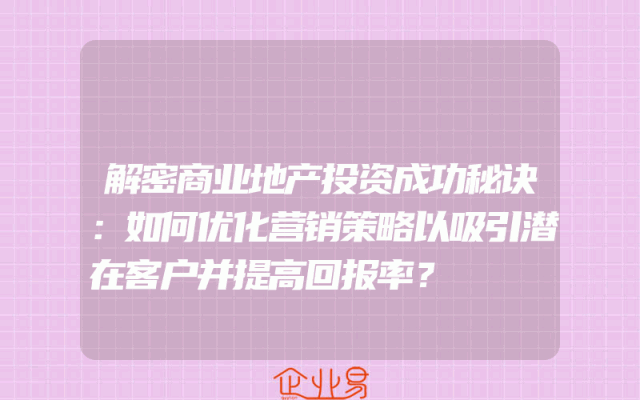 - 解密商业地产投资成功秘诀:如何优化营销策略以吸引潜在客户并提高回报率?