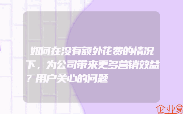 - 如何在没有额外花费的情况下,为公司带来更多营销效益?用户关心的问题