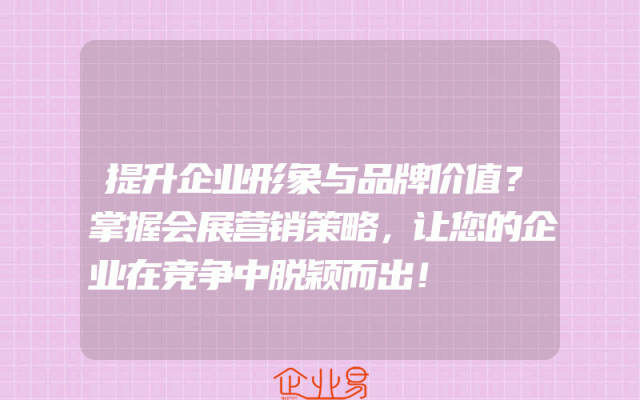 - 提升企业形象与品牌价值?掌握会展营销策略,让您的企业在竞争中脱颖而出!
