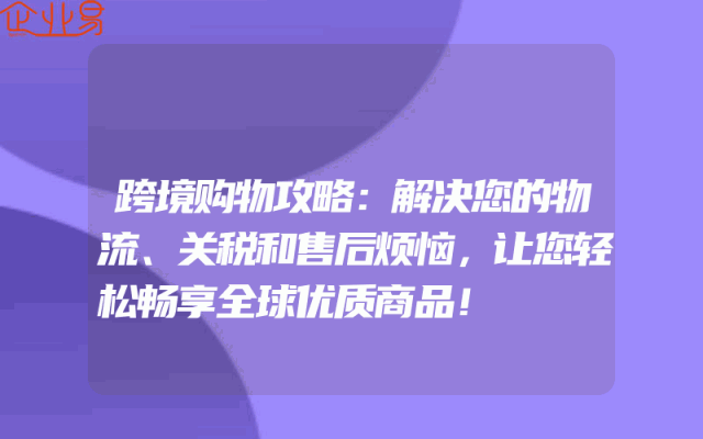 - 跨境购物攻略:解决您的物流、关税和售后烦恼,让您轻松畅享全球优质商品!