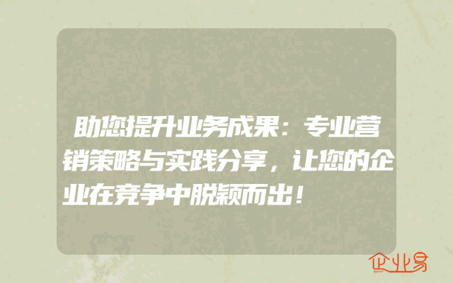 - 助您提升业务成果:专业营销策略与实践分享,让您的企业在竞争中脱颖而出!