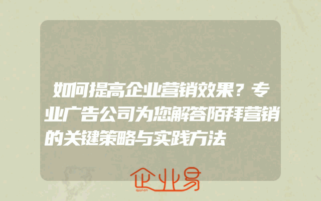 - 如何提高企业营销效果?专业广告公司为您解答陌拜营销的关键策略与实践方法