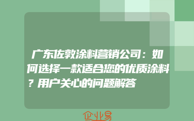 - 广东佐敦涂料营销公司:如何选择一款适合您的优质涂料?用户关心的问题解答