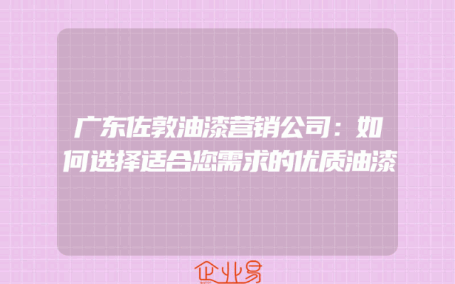 - 广东佐敦油漆营销公司:如何选择适合您需求的优质油漆?解答用户关心的问题在家装过程中,油漆是不可或缺的一环。它不仅能够美化家居环境,还能够保护墙面免受污渍、紫外线和氧化等因素的侵害。然而,面对市场上琳琅满目的油漆品牌和种类,许多消费者往往感到