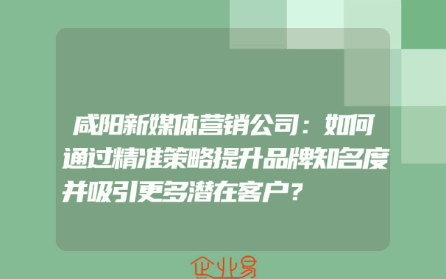 - 咸阳新媒体营销公司:如何通过精准策略提升品牌知名度并吸引更多潜在客户?