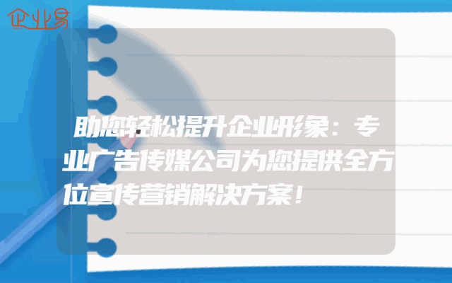- 助您轻松提升企业形象:专业广告传媒公司为您提供全方位宣传营销解决方案!