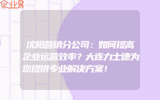 - 沈阳营销分公司:如何提高企业运营效率?大连力士德为您提供专业解决方案!