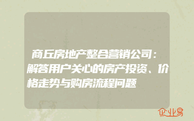 - 商丘房地产整合营销公司:解答用户关心的房产投资、价格走势与购房流程问题