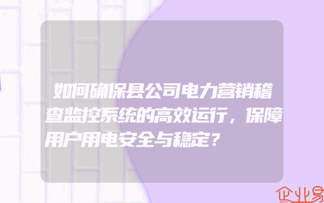 - 如何确保县公司电力营销稽查监控系统的高效运行,保障用户用电安全与稳定?