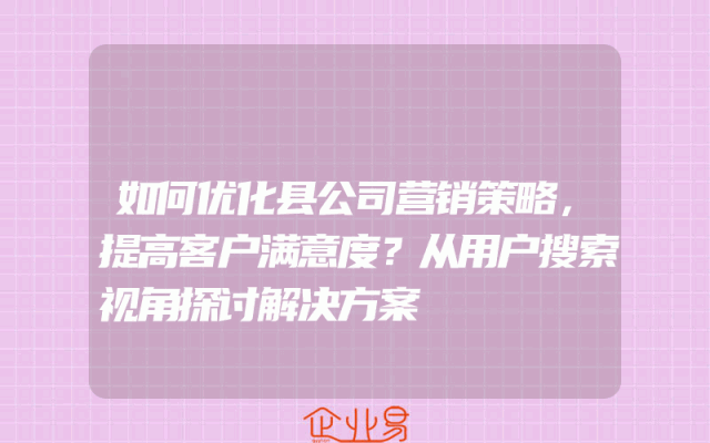 - 如何优化县公司营销策略,提高客户满意度?从用户搜索视角探讨解决方案