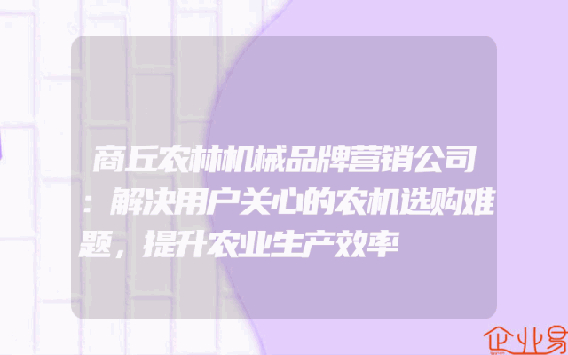 - 商丘农林机械品牌营销公司:解决用户关心的农机选购难题,提升农业生产效率