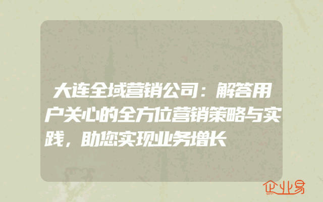 - 大连全域营销公司:解答用户关心的全方位营销策略与实践,助您实现业务增长
