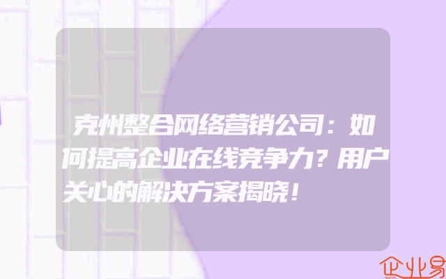 - 克州整合网络营销公司:如何提高企业在线竞争力?用户关心的解决方案揭晓!