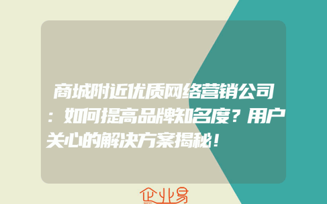 - 商城附近优质网络营销公司:如何提高品牌知名度?用户关心的解决方案揭秘!