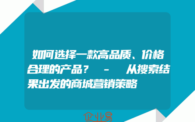 - 如何选择一款高品质、价格合理的产品? - 从搜索结果出发的商城营销策略