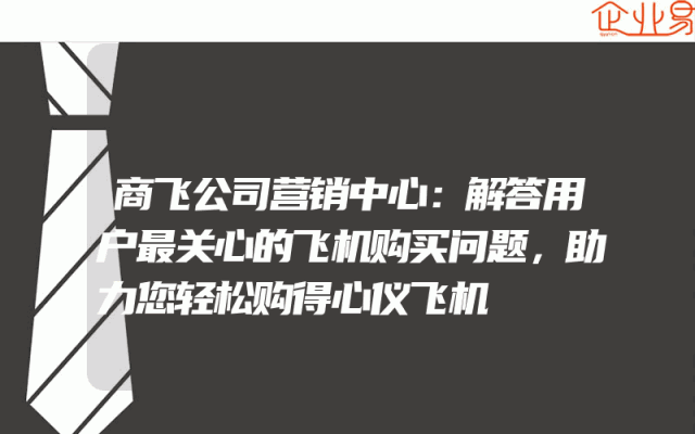 - 商飞公司营销中心:解答用户最关心的飞机购买问题,助力您轻松购得心仪飞机