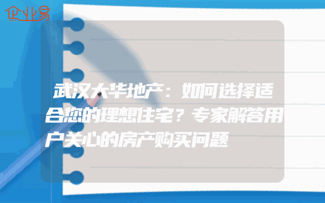 - 武汉大华地产:如何选择适合您的理想住宅?专家解答用户关心的房产购买问题