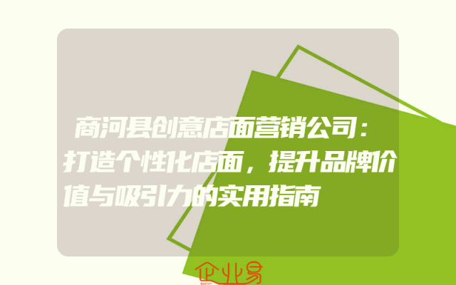 - 商河县创意店面营销公司:打造个性化店面,提升品牌价值与吸引力的实用指南