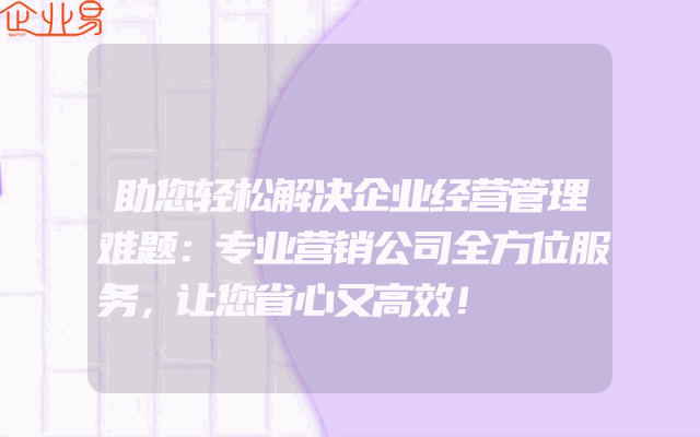 - 助您轻松解决企业经营管理难题:专业营销公司全方位服务,让您省心又高效!
