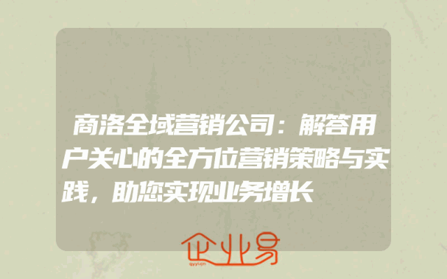 - 商洛全域营销公司:解答用户关心的全方位营销策略与实践,助您实现业务增长